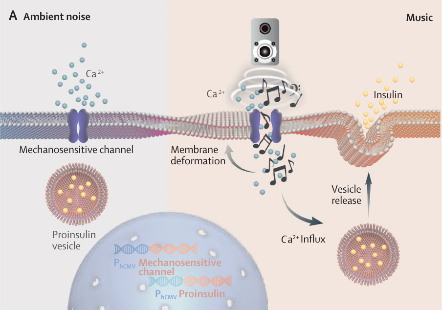 নির্দিষ্ট ফ্রিকোয়েন্সির সাউন্ড কোষের mechanosensitive channel খুলে দেয়, এতে ক্যালসিয়াম প্রবেশ করে → ইনসুলিন নিঃসৃত হয়। এভাবেই শরীর নিজে থেকেই ভারসাম্যে ফিরে আসে।
